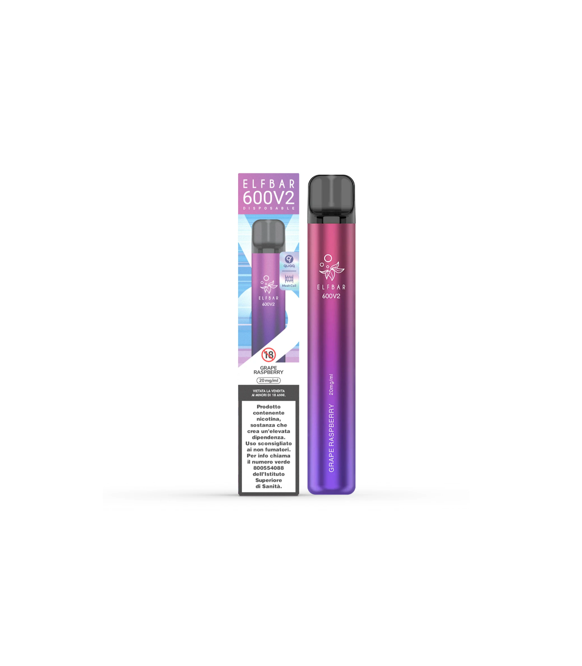 ELF BAR 600V2 è cambiato solo leggermente in termini di formato. La circonferenza si è ridotta di qualche millimetro. Come prima, c'è ancora spazio per 2 ml di liquido. Con questo, la sigaretta elettronica offre da 300 a 600 tiri con un aroma intenso. Il numero di tiri varia a seconda dell'intensità e della durata degli stessi. La versione 2 di Elfbar 600 è attualmente disponibile solo con 20 mg di nicotina, che corrisponde al 2%.